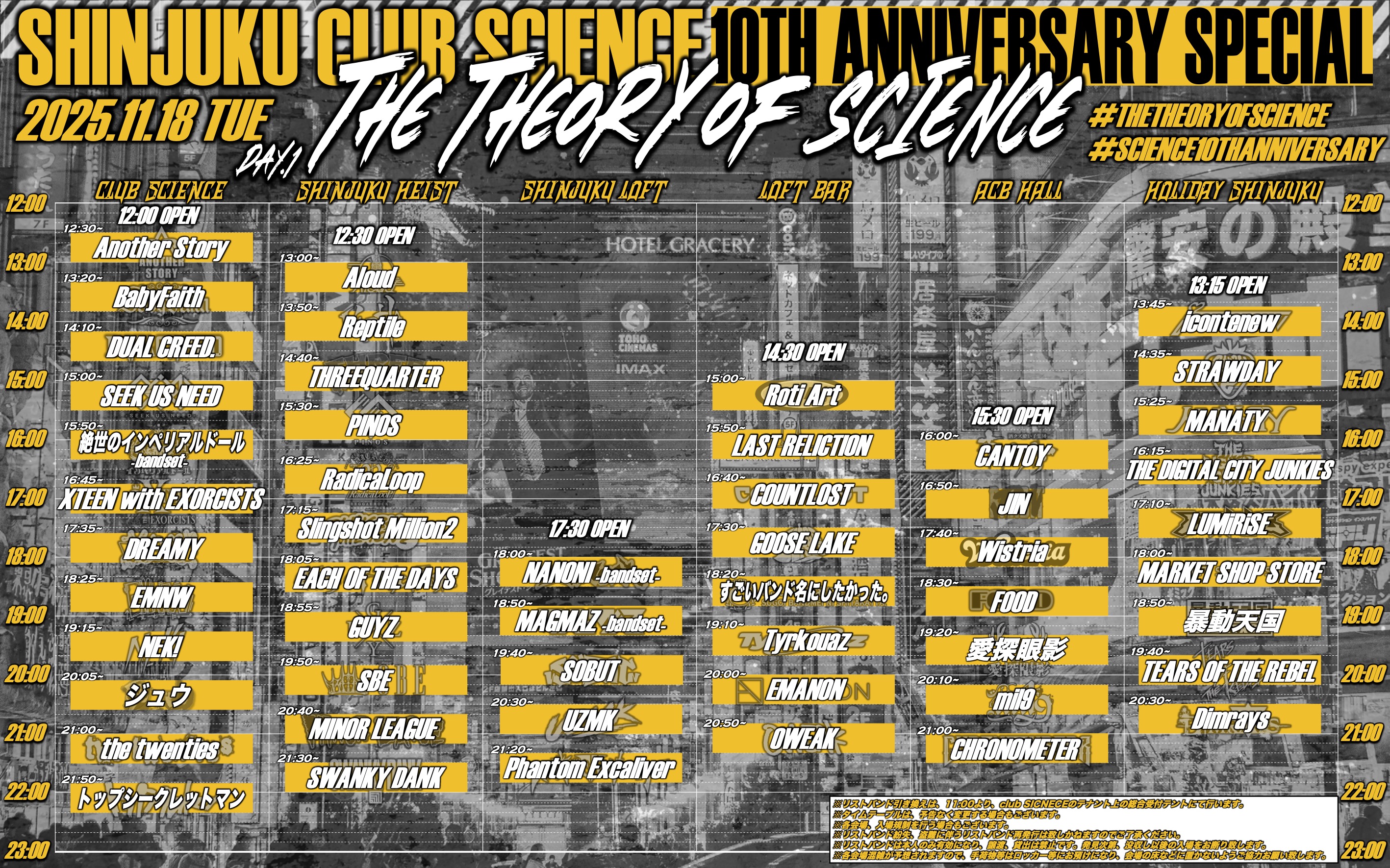 4会場同時開催サーキットイベント Shinjuku club SCIENCE Shinjuku HEIST HOLIDAY SHINJUKU 新宿ACB Hall (4会場同時開催サーキットイベント)